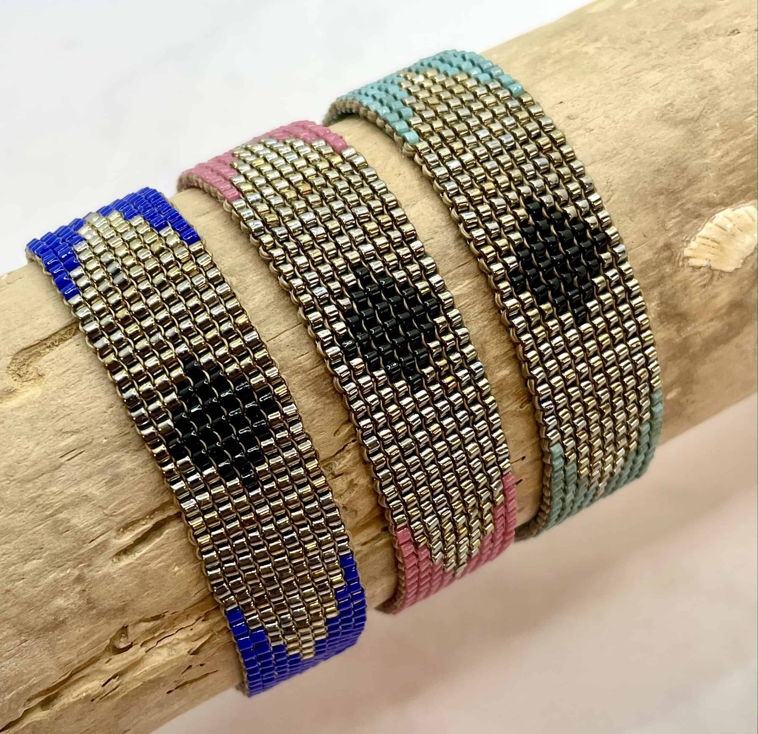 Amahle est une manchette entièrement tissée à la main et composée de perles Miyuki. Ces perles en verre sont de grande qualité et très régulières.