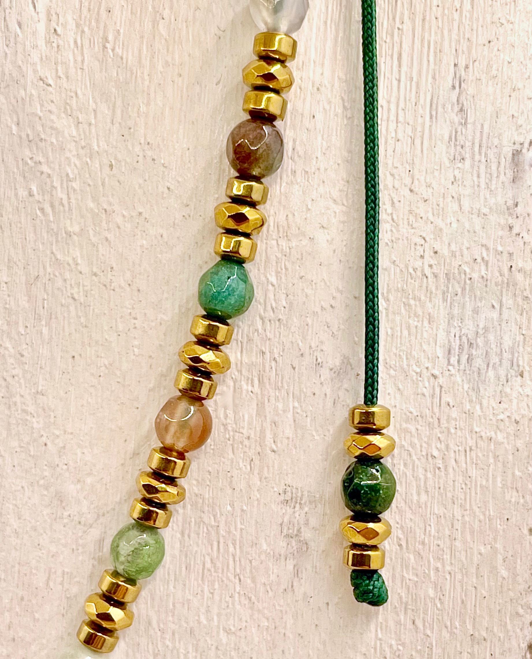 Les perles sont sont montées sur un cordon nylon tressé, très résistant.